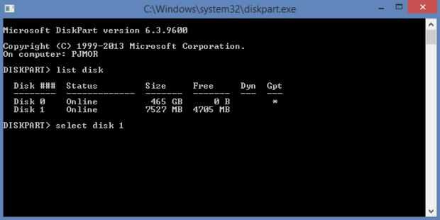 En la lista te muestra diskpart, encontrar el dispositivo de almacenamiento que desee dar formato. Mira el tamaño del volumen. Por ejemplo, si se formateo una tarjeta SD de 8GB, buscar un volumen alrededor de ese tamaño. En mi caso, 0 es mi disco duro interno, y 1 es mi tarjeta SD de 8GB. Una vez que ha encontrado que el número representa el dispositivo de almacenamiento, tipo Seleccionar disco ## que representa el número de su dispositivo.