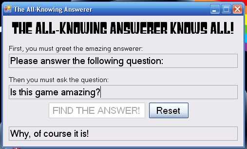 Hola a todos! En este Instructable, primero voy a mostrar cómo sorprender a tus amigos con un juego basado en la Web de Pedro responde, un truco en el que el usuario le dice a un amigo a hacer una pregunta al gran "Pedro", peticiones a Peter con un saludo y luego tipos pregunta de amigo en el cuadro. "Peter", sorprendentemente, responderá a la pregunta correctamente cada vez... siempre y cuando el usuario sabe la respuesta, es decir. El truco es que el usuario secretamente entre la respuesta a la pregunta en el cuadro de "petición" escribiendo un período, entonces la respuesta y luego otro período. El programa continúa automáticamente con la petición por escrito previamente por lo que el amigo no puede ver lo que está sucediendo. Este Instructable le mostrará cómo hacer un programa similar a este, pero no completamente el mismo, para engañar a tus propios amigos!