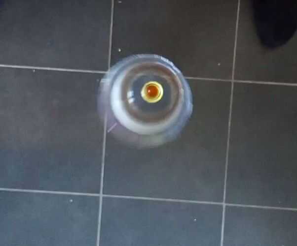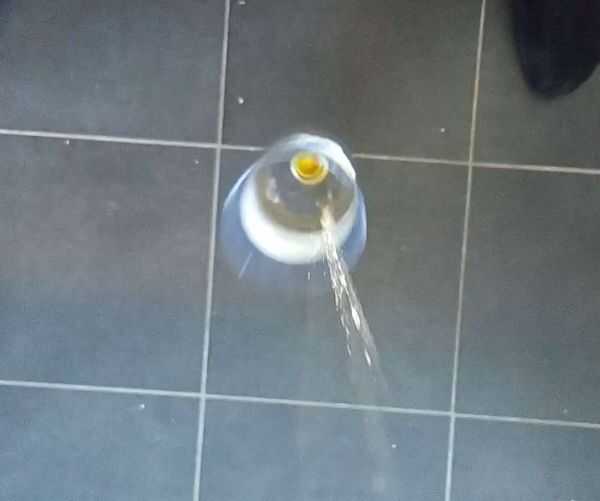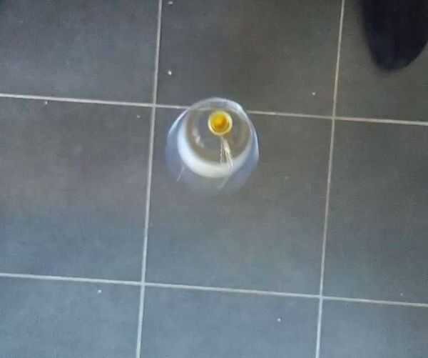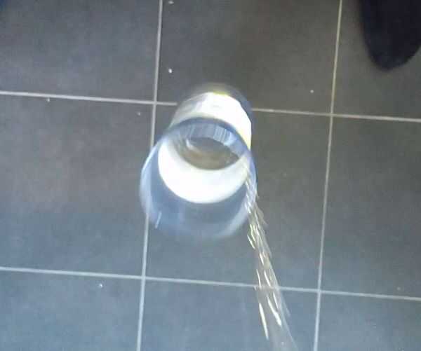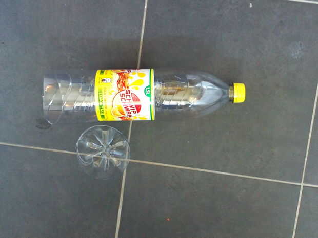 Tratando de ser capaces de ver lo que está sucediendo en la tapa de la botella y qué tan alto puede salpicar el líquido, quité la parte inferior de las botellas. Curiosamente, usando una botella de Pepsi 1,5 ltr, partes del líquido eran salpicaduras superior entonces la altura a partir de la caída. Usted puede tener una mirada en la película en tiempo real, pero podrás ver más detalles en las imágenes individuales.