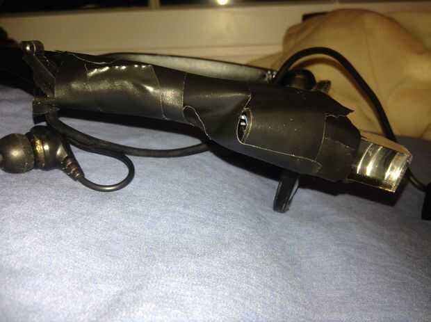 Tire de la broca con el auricular hacia atrás a un buen lugar en los vasos y con cinta adhesiva hacia abajo también.
