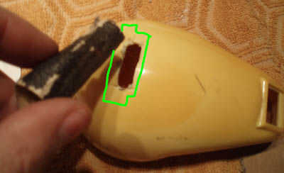 Después de terminar el corte he arreglado todos los esquejes con un pequeño papel de lija un duro para las cosas difíciles y formar y una fina para más detalles. Después de hemos hecho casi ahora el agujero se ve como la imagen.