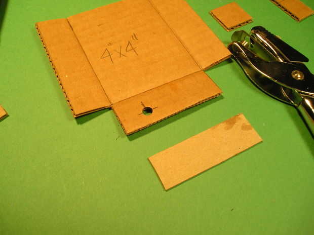 Ver fotos del resultado de hacer el agujero. Sólo usé un sacador de papel que era 1/4 pulg de diámetro.