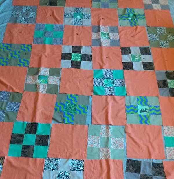 Como lo haría para cualquier edredón de remiendo, extienda sus bloques antes de empezar a coserles juntos.