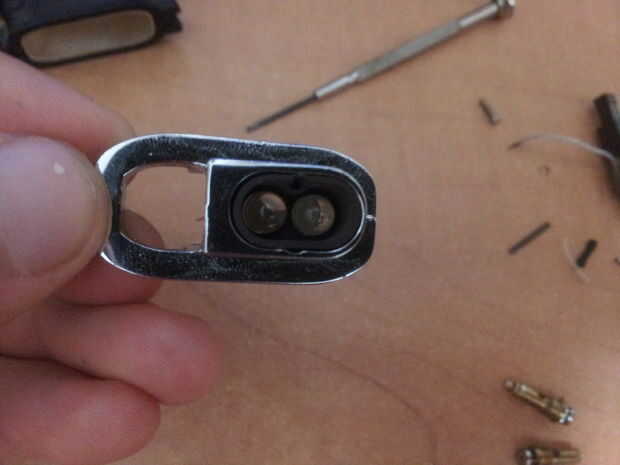 Después de eso uso caliente pegamento en cola los LEDs en los dos agujeros (ver foto número 3).