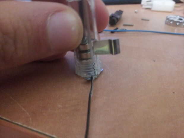 Ahora, conectar los cables eléctricos a las partes positivas y negativas, el cable negativo va al cable negativo que está conectado a las patas de los LEDs y el cable positivo va al interruptor.
