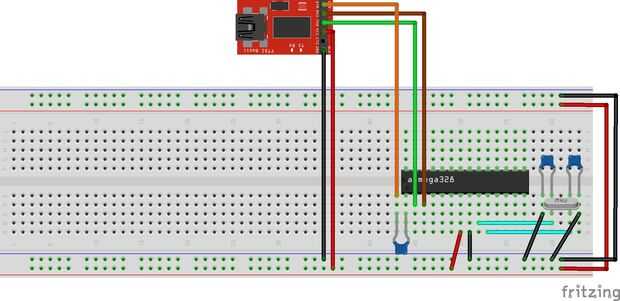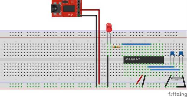 El chip lleva a cabo como un Arduino en un protoboard. Aunque hay numerosos instructables sobre este tema pero pensé que para cubrir este tema en mi instructables.