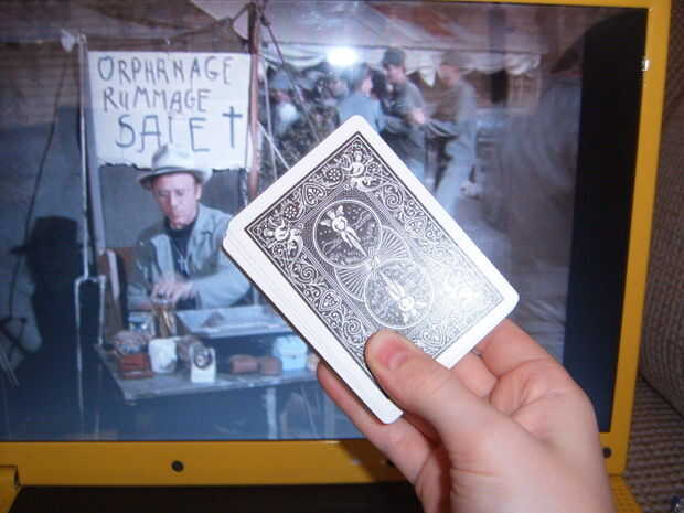Sostenga la baraja de cartas en su mano con el pulgar en la parte inferior.