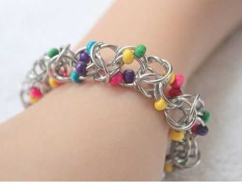 Pulsera de cadena de nido de pájaro - la armadura de la cadena también conocido como cadena bizantina. Forma de cada bloque se parece al nido de pájaro especialmente si agrega unos granos alrededor de él.