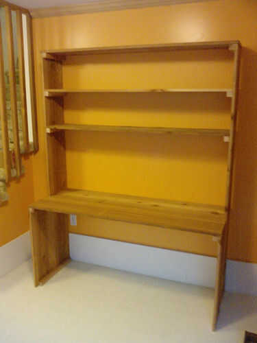 El escritorio entero estaba hecho de tablas de cedro rojo 1 x 12 que reutilizada de estantería que se encontraba en la casa y consejos que encontré en el desván y piezas de cedro de 2 x 2 rojo que rescatado de la barandilla del porche.