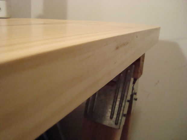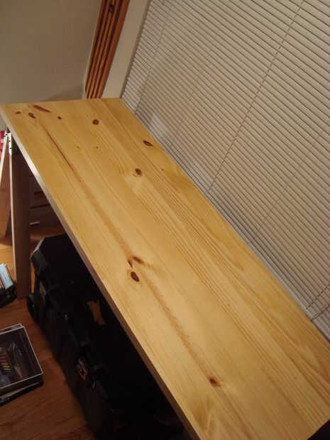 3. lijar la superficie de su escritorio. El pino que estaba usando era ya un acabado liso, por lo que apenas usó un grano 220 en ambos lados.