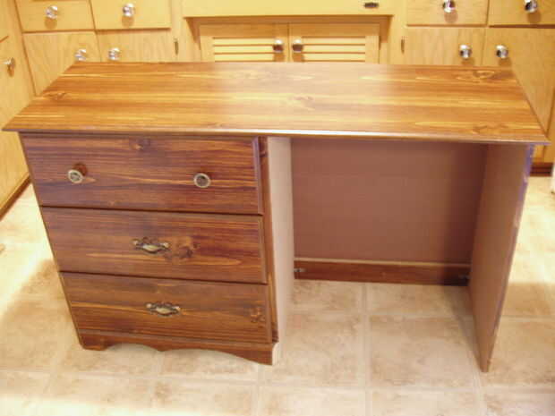 Entrar en HGTV. Mientras que viendo un programa en particular (básicamente sobre maneras baratos maquillaje baño) hice nota de un proyecto en particular. Una mujer tenía un aparador extra, pero necesitaba un escritorio... quitaron rápidamente los cajones, noqueados a las agallas, y funcionó a la perfección para su oficina en casa.