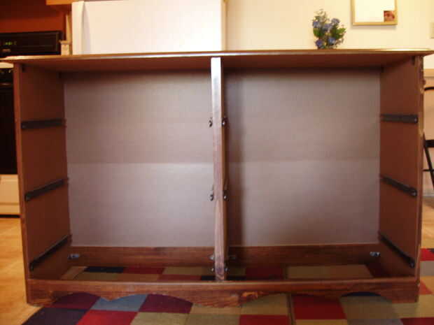 Aquí está después de remover todos los cajones. Aviso la pieza decorativa de la madera a lo largo de la parte inferior; Esto sería un problema ya no vio a trabajar Tuve una sola Sierra. Tener en cuenta que estaba tratando de hacer esta pieza de mobiliario con cero inversión al lado de mi tiempo, el trabajo y la sangre que fluye libremente.