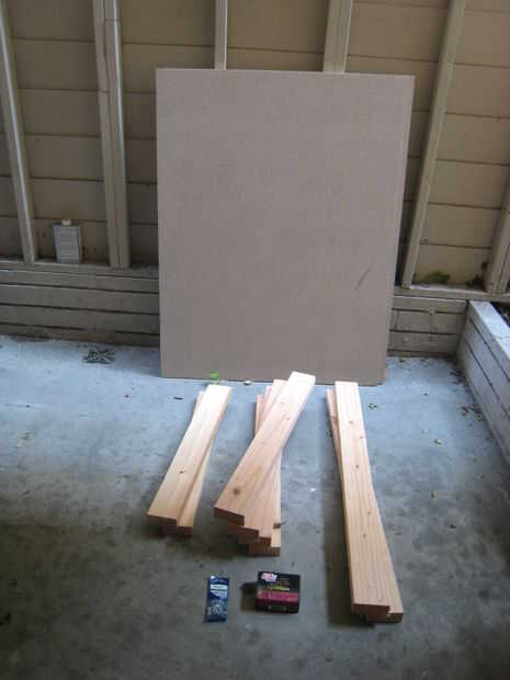 Primero haga que corte el tablero de partícula grande en pedazos de dos 3 pies x 4 pies. Esto debe dejo una pieza extra de 2 pies x 4 pies de chatarra. Si va antes de tiempo, que incluso podría tener el pequeño pedazo cortado para hacer un estante para caber debajo de su escritorio, algo no hice.
