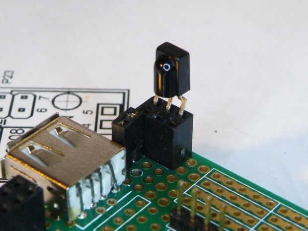 Un encabezado de 3 x 2 hembra se instaló como un zócalo para el chip decodificador.
