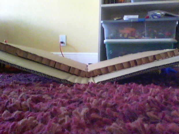 el pegamento solo no mantendrá el ángulo. ahora encolado las piezas de capa 2 para que toquen en el centro. (capa 1 debe todavía ser doblado) deje que el pegamento secando.