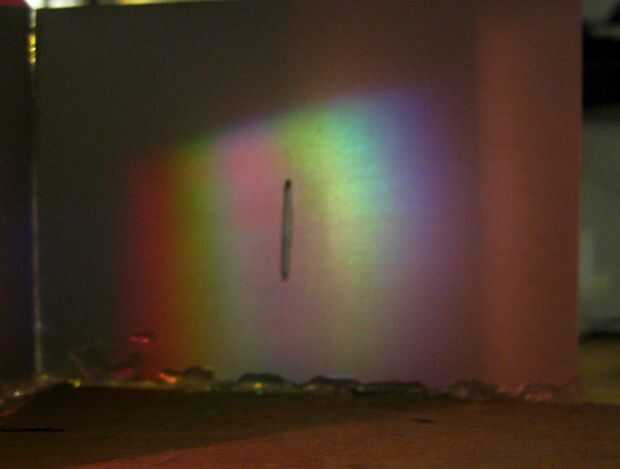 Luego, con la fuente de luz y CD en su lugar, proyectar un espectro en la Junta Directiva y asegúrese de que todas las partes del espectro se pueden alinear con la ranura, dependiendo del ángulo de la CD.