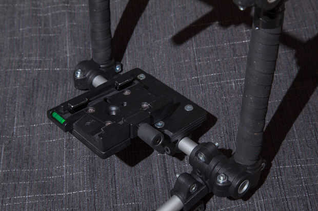 La paltform de cámara más simple es cortar una placa de madera o plástico, perfore un orificio de 1/4" a través de él y colocar un par de pinzas en la parte inferior. Puede ampliar el orificio en una ranura para que pueda mover la cámara para equilibrar, o incluso colocar un plato de liberación rápida como tengo en la mía.
