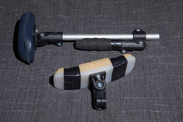 Las partes principales de la construcción son tubos de metal y las abrazaderas de tubo. Además se necesita algo para poner la cámara en preferiblemente algo para apoyar contra su cuerpo para un punto extra de contacto.
