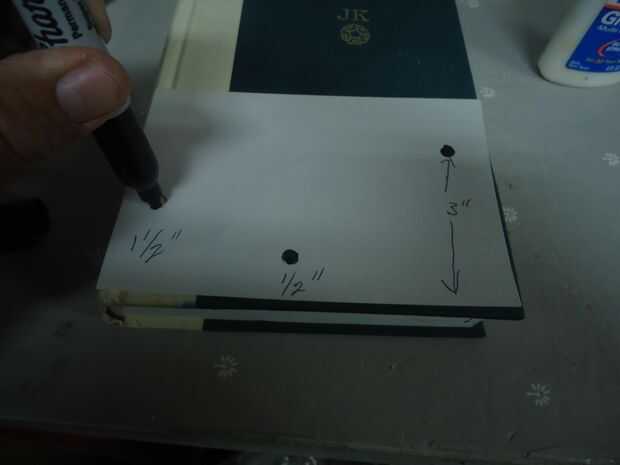 1. hacer una plantilla con la tarjeta de índice. Observe la posición de los puntos de taladro de la tarjeta de índice que se muestra.