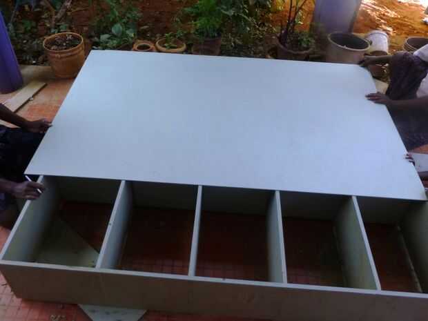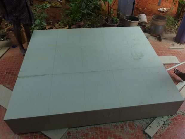 Para reforzar el trabajo del marco cubriremos la parte posterior con el tablero grueso de 1/4 de pulgada. El tamaño del tablero es 8 pies por 4 pies, así que tenemos que utilizar dos pedazos para el tamaño necesario para cubrir la espalda.