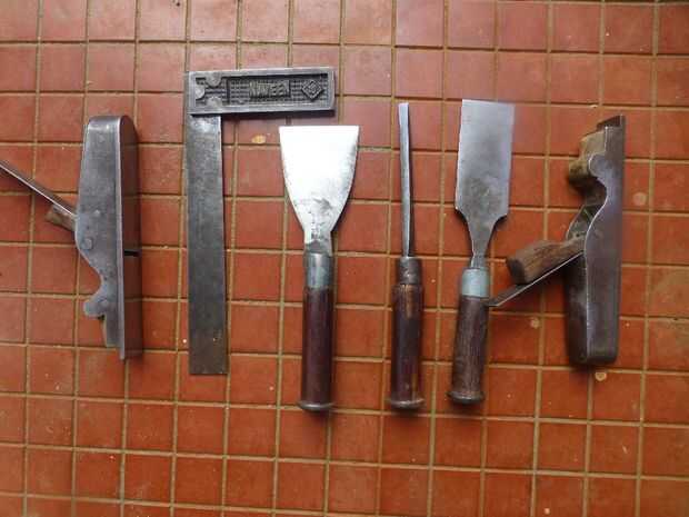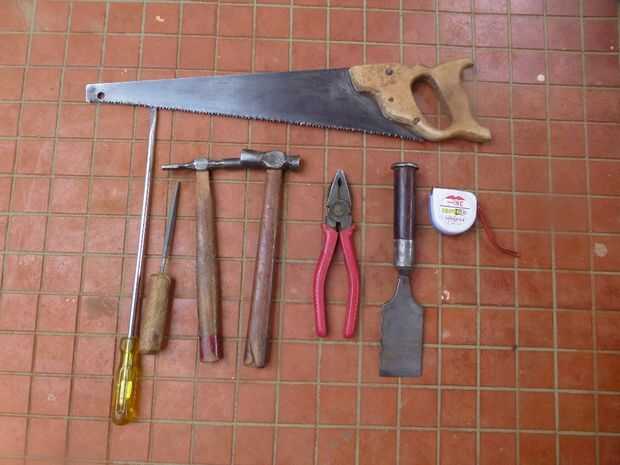 • Herramientas de carpintero como serrucho, martillos, cinceles, alicates, A escuadra y vicio.