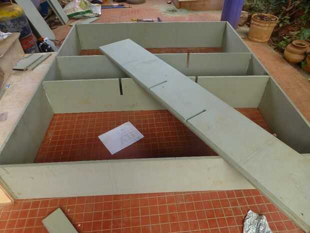 • Hacer ranuras a la mitad la profundidad de las tablas en el orden inverso, que es contraria a la hecha en las juntas horizontales.