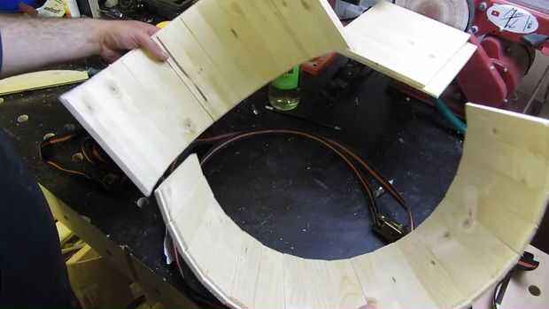 2. Tuve que pegar dos cuartos juntos para conseguir un medio círculo. Para obtener buena presión de sujeción incluso usé correas de tensión.