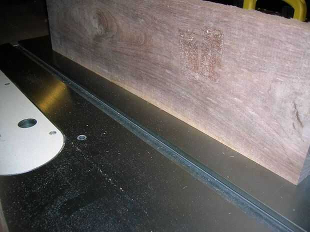 Después plaining, necesita un borde del cuadrado de referencia. Conjunto de un borde en la fresadora. Luego reviso la llanura contra una superficie plana conocida - como el hierro fundido con mi sierra de mesa