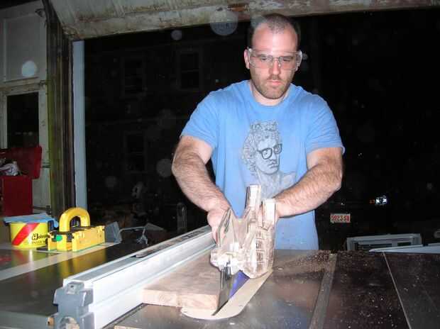 Una vez articulado, el borde articulado se coloca contra la valla en la Sierra de mesa y el otro borde se corta limpio. Esto asegura que sus aristas son paralelas entre sí