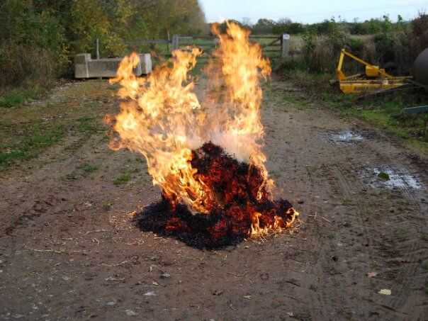 Un tambor de aceite se coloca sobre la parte superior y todo está cubierto de paja. Coloque luz y esperar 10-15 minutos para un pollo barbacoa perfecta.