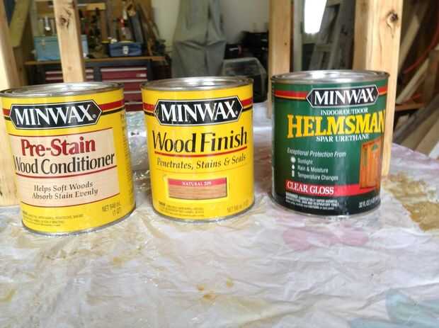 No soy experto en acabado de muebles, pero me di cuenta que tenía latas de parte del acondicionador de madera y sellador y mancha. El acondicionador se parecía ser una buena idea en asegurarse de que la madera se preparó para la tinción. Así que, obedientemente apliqué un par de capas de eso. Limpié el pincel en aguarrás cada vez que hice alguno de estos pasos. Apliqué dos capas de sellador de roble de color y la mancha. La madera era un poco áspera después de la primera capa, por lo que enarenó ligeramente la tabla entre las dos capas de tinte roble. Lijar la mesa ligeramente después de la última capa de tinte, así. Finalmente, estaba listo para mi brillante, mástil acabado. Elegí brillante, porque me gustan los cuadros que reflejan su entorno. Usted puede comprar semi-gloss y mate termina así. Todo depende de tu gusto. Apliqué dos capas de acabado del mástil y estaba muy contento con el resultado.