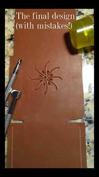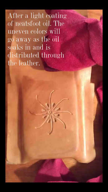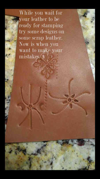 El cuero húmedo, llamado "caja", es un poco de habilidad que yo todavía no he dominado. Afortunadamente, usted todavía obtener un buen producto final para este proyecto incluso si usted no hacerlo bien... así que sólo voy para él. Tomar tu piel y mantenerla bajo el agua durante 20-30 segundos. Déjalo sentarse por un rato hasta que apenas empiece a empezar a buscar el color normal (cuando está seco). Ahora será flexible y listo para cualquier sellado/talla que quieres hacer. No voy a discutir cómo hacerlo, busque tutoriales para Instructables en línea u otros. Tandy tiene toneladas de vídeos disponibles para libre , pero YouTube también está lleno de ellos.