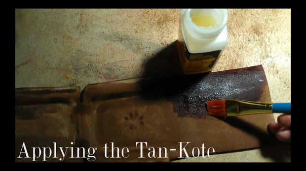 Luego aplico Tan Kote en el interior utilizando una brocha barata. Esto ayuda al difuso dentro de la piel a permanecer suave y no convertirse en polvo de cuero. También ayuda a tener una capa más dura, pulida que ayuda a la lata fácilmente deslizar dentro y fuera de la caja. No es necesario el Tan Kote pero dado que tengo algunos y como tener el interior trataron lo uso.