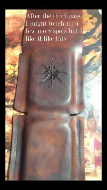 Nota: Si utiliza aceite del neatsfoot necesita saber que naturalmente oscurecerá su cuero. Si el tinte no es absolutamente tan oscuro como le gustaría pero es luego cerrar una aplicación de aceite del neatsfoot probablemente encontrará allí. Si es perfecto y usted no quiere cualquier oscuro luego pase el aceite del neatsfoot o utilizar una alternativa que no oscurece la piel.