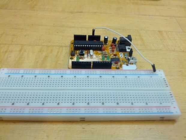 1.) Conecte un cable de 6 pulgadas (para actuar como un campo global) desde el puerto GND de Arduino a la tierra en el protoboard.