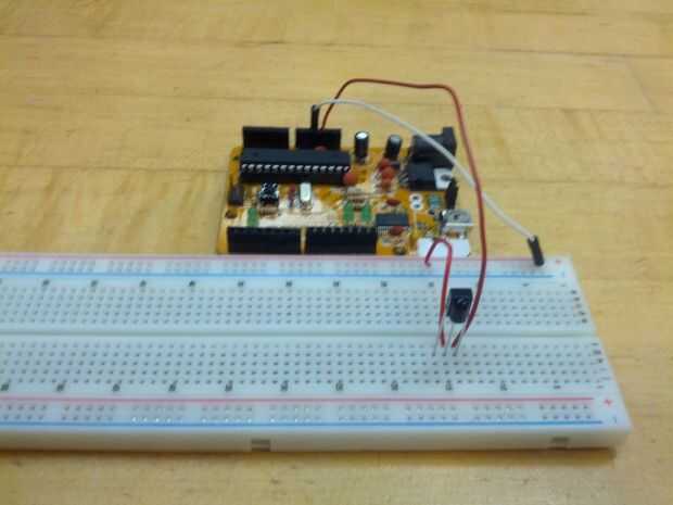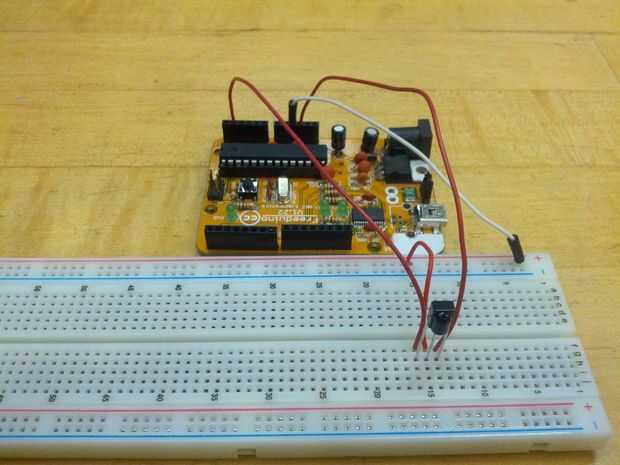 2.) Inserte el receptor de infrarrojos en la placa (la ubicación no es necesariamente importante).