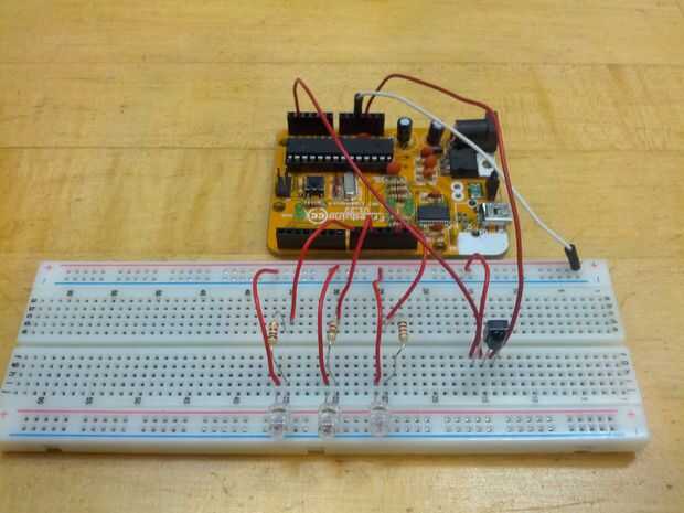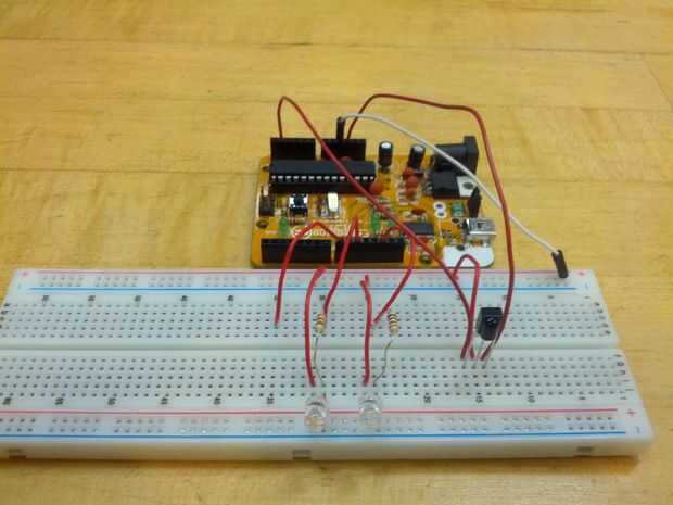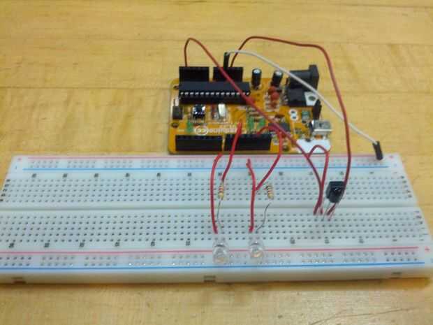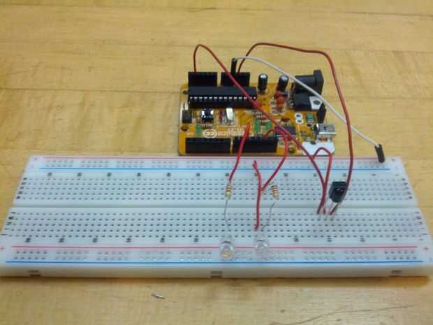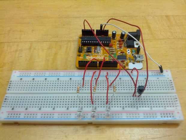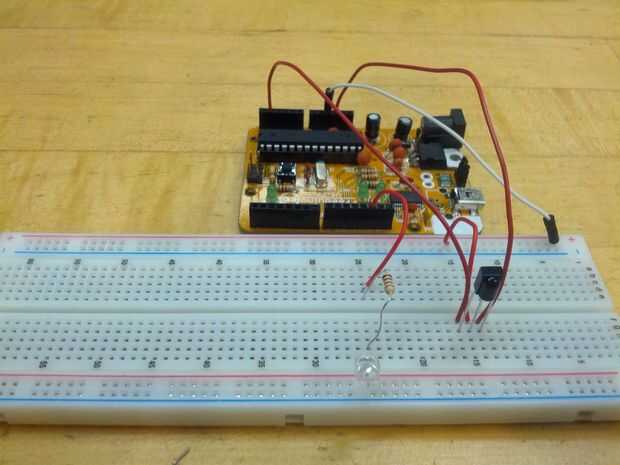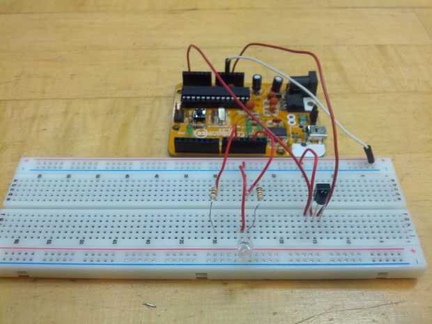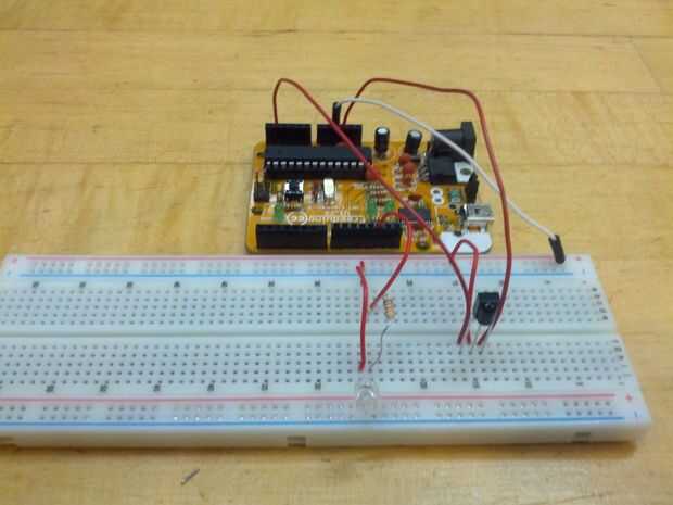 1.) Conecte un alambre corto del pasador D12 Arduino hacia el armario de la placa, dejando un armario de la muesca en la costura