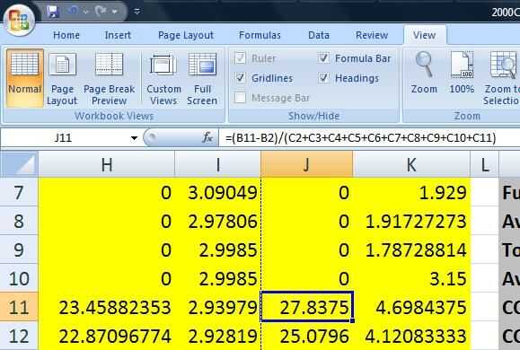 =(B11-B2)/(C2+C3+C4+C5+C6+C7+C8+C9+C10+C11) MPG