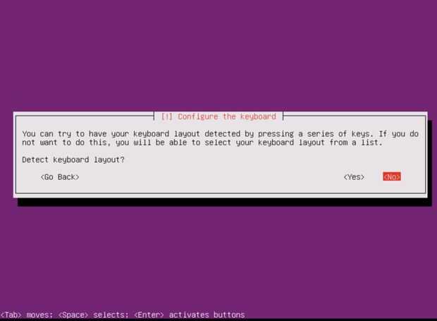 Nota: Si está usando un teclado americano normal, seleccionando "no" y "inglés (Estados Unidos)" en la siguiente pantalla es la opción más rápida y fácil.  La única razón que le elige "sí" es si usted está usando un teclado tipo de encargo.