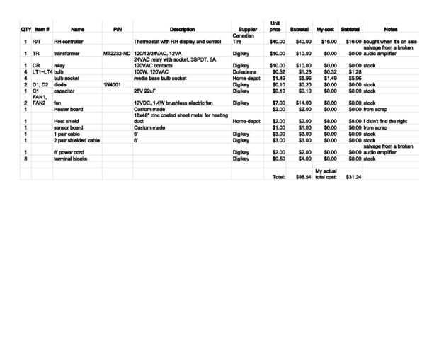 El costo total sería menos $100 si usted tiene que comprar todo, pero si podría utilizar algo de su acción o de desecho, puede ser mucho menos, en mi caso, sólo $31,24. Ver el archivo adjunto para los detalles de los materiales y estimación de gastos y mi costo real.