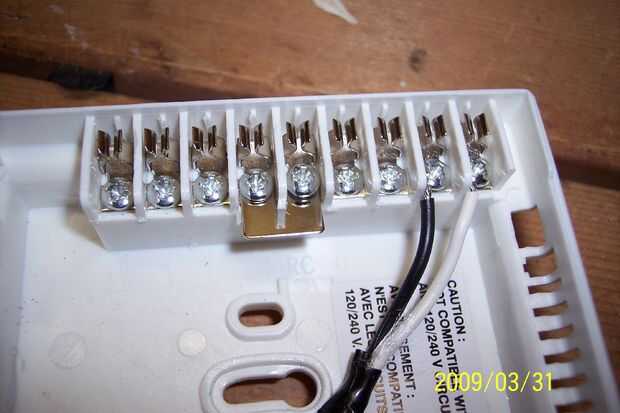 4. cierre del termostato. Puede que necesite, haga dos orificios en la parte inferior a la ruta de los dos cables. El termostato de la madre puede tener un descanso ahora.