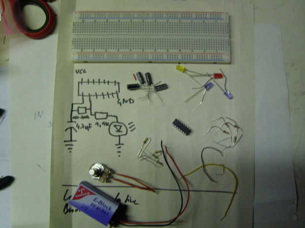 -CMOS 1 74C 14 - es un microchip pequeño y muy barato, lo utilizamos para crear osciladores para hacer nuestro parpadeo de LEDs