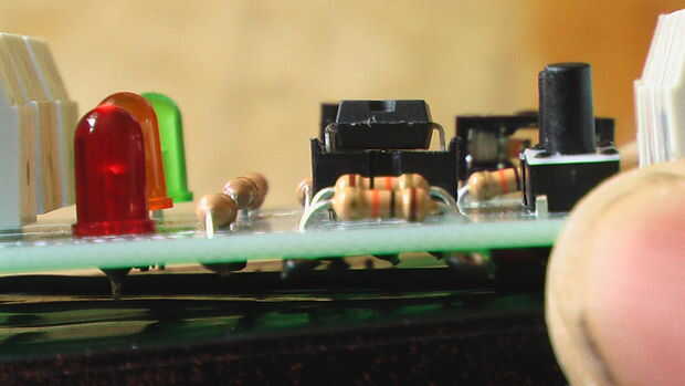 El LED verde / rojo y rojo con flash. Uno de los leds se encienda. Cuando esto sucede los jugadores tienen que encontrar un objeto de ese color. Una vez que tienen deben Presione y mantenga presionado el interruptor. Si son primera entonces todos los colores parpadeará y luego un color se encienden (rojo para el jugador 1, sw1) o amarillo para el jugador 2, sw2. Y luego dicen cuál es el objeto y cualquier Prensas de jugador que serán escogidos el interruptor y un nuevo color.