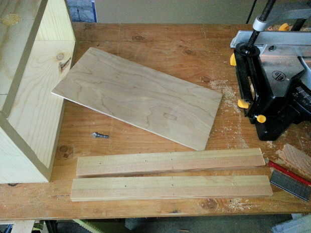 - Tomar lo 14 1/2 "x 6" x 1/4 "hoja, colóquela boca arriba (la parte lisa), coloque una tabla de 1" x 2" en la parte superior, línea Plaza con la parte superior de la hoja y luego usando los mismos orificios, coloque la broca a través de la Junta y perfore a través de la hoja. Lo mismo para la parte inferior de la hoja