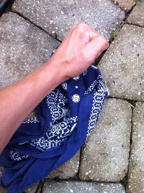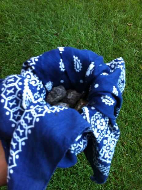 Ahora, tomar las piezas de carbón y poner en el centro de la pieza de tela (imagen 3). Ahora reunir a todos los rincones de la tela para que el carbón se encuentra en la parte inferior (imagen 4). Ahora, con el carbón de leña, usa tu mano para aplastar en polvo (imagen 5). Poner la parte con carbón de leña en el cono y repartidas por las esquinas para que pueda ver el carbón (imagen 6).