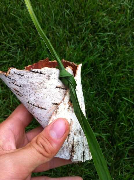 Lo primero que debes hacer es rodar la corteza en un cono y utilizar su cuchillo para empujar un agujero a través de la parte traslapada. (imagen 1)