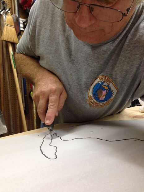 8. usando una sierra de vaivén, corte la plantilla ampliada.