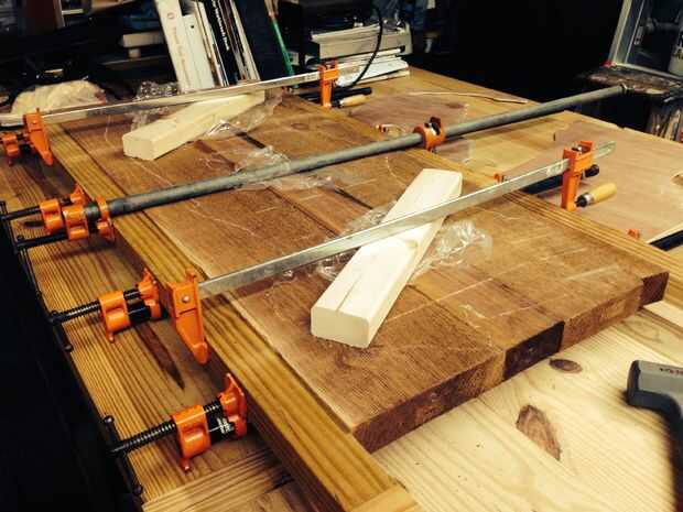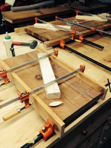 Foto #9 #10 #11: abrazaderas utilizan durante la cola para arriba. En la bench(#9) es la plantilla de madera contrachapada.