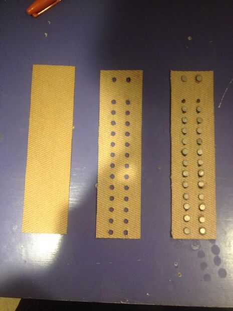 Lo recomiendo completar la porción de corte de este proyecto es el siguiente. Cortar las líneas en la cinta (el archivo tiene números al lado de las líneas, pero decidió no utilizarlos. Lo justo sería una plantilla más complicada). Cortar dos trozos de tela sin los agujeros. Corte un pedazo de tela con los agujeros.