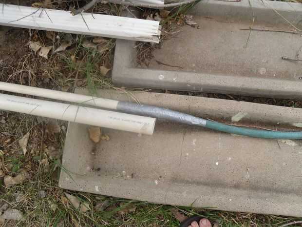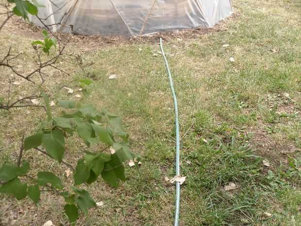 Con cinta para tubos os adjunto una manguera vieja en la línea de goteo de alterna.